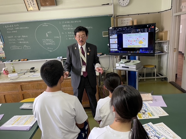 今回は鉄筋の教室内から体験交信でCQを出したら、郷土の無線家JE2EIHからRS52で応答があり本当に嬉しかった。生徒から交信を開始すると、皆も無線機からの知らない人の声の楽しい質問に惹きつけられました。今回は失敗は成功の基という内容で、勇気を持って初めての事にチャレンジする重要性を説明した。何もせず失敗しないより、勇気を出して失敗した人はその時点でかなり前進しているという話から始まった。体験交信の後に情報共有技術についてスマホとアマチュア無線の特徴を説明した後に、トークンパッシング方式の通信形態を機械制御に応用した話をしてみた。何せ好きで就いた仕事も9年務めて挫折して失敗退社した後に、1年後に同じ会社に入社してあえいでいた話をすると生徒からどっと笑いがでた。偶々好きだったアマチュア無線の技術を使って、少しづつ情報共有方法の仕事のやり方を変えて、それを設計構造にこのように応用して成功したんだよとか具体的な図で話をしてみた。互いに異なるグループと効率よく情報共有を密にするためには、共通のルールを定めたインターフェイスを介して高速にマイクをまわしているのと同じ様な構造にしたと説明すると理解が得られた様だ。NPO法人ラジオクラブが今夏8月に実施したCBT方式4アマ国試無料講習会に嬉しい事に八幡中学の2年生も参加してくれた事を話すと、皆の知り合いらしく「ウォー!」と歓声が上がった。身近な仲間のアグレッシブな行動にはかなりの共感があり影響力もあるようだった。